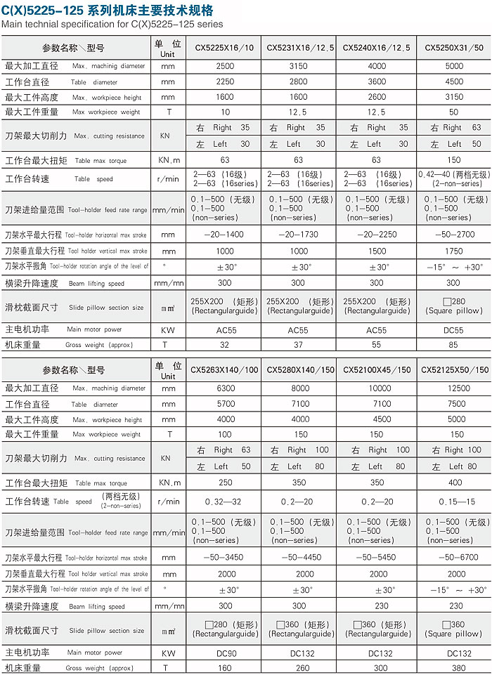 C(X)52系列普通、數(shù)顯雙立柱車床 |